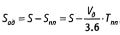 здесь: Sad - удаление ТС от места наезда в момент обнаружения препятствия для его движения при допустимой скорости, м.